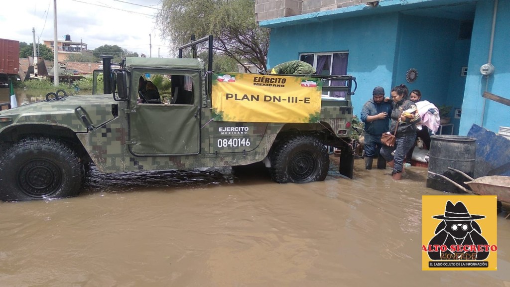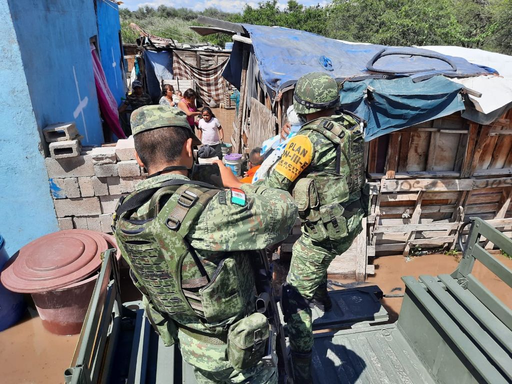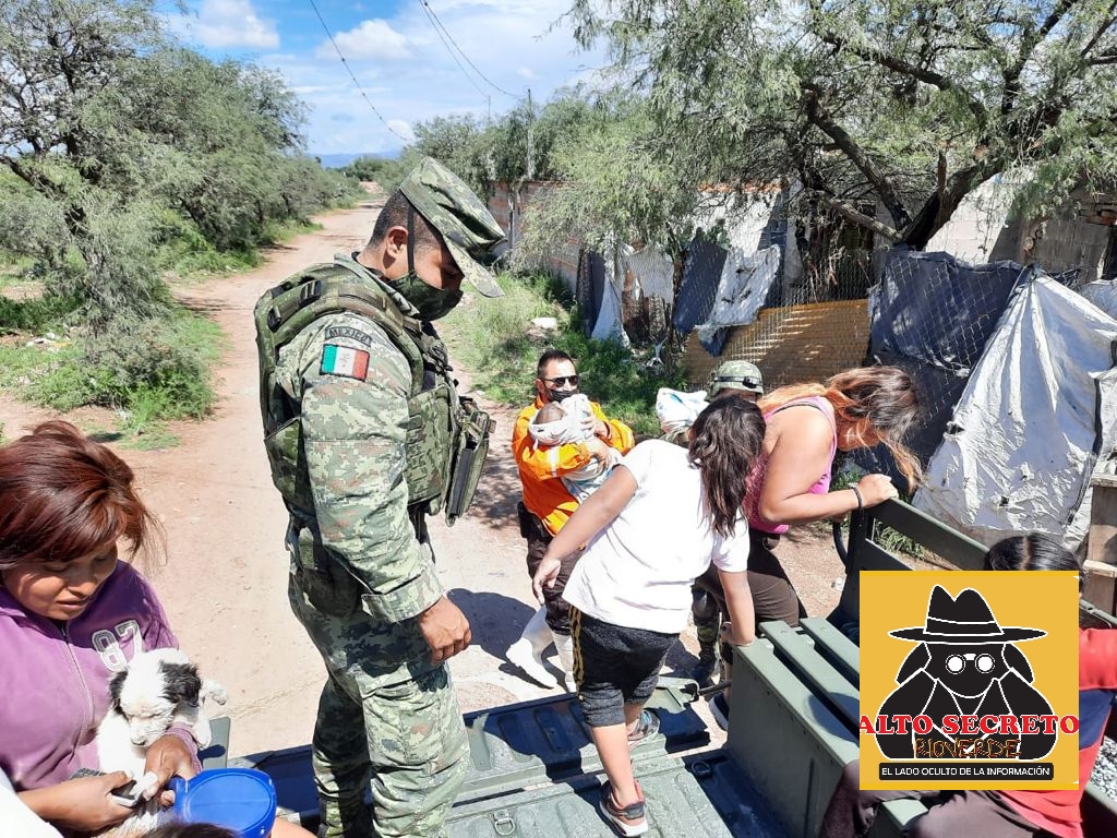 Personal militar adscrito al 40/o Batallón de Infantería, aplicó el Plan DN-III-E en los municipios de Soledad de Graciano Sanchez y San Luis Potosí, en la comunidad Milpilla, ante las intensas lluvias que se han estado registrando.
