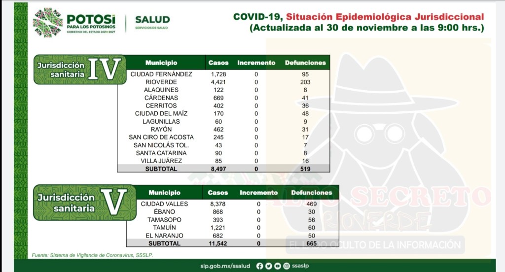 En lo que al municipio de Rioverde se refiere suman ya 4,421 casos positivos y 203 decesos.
