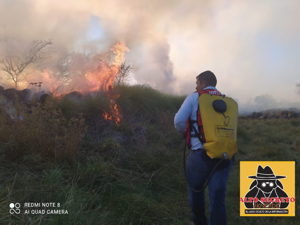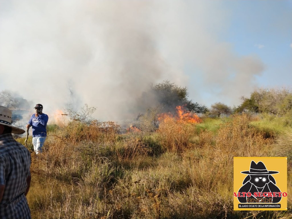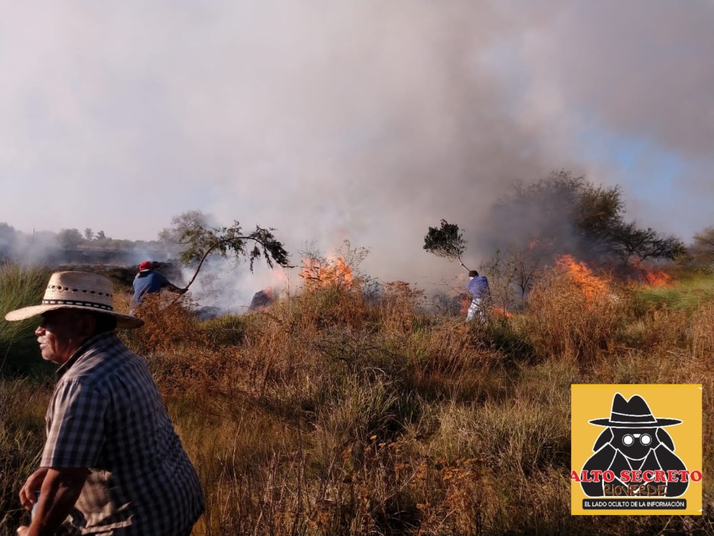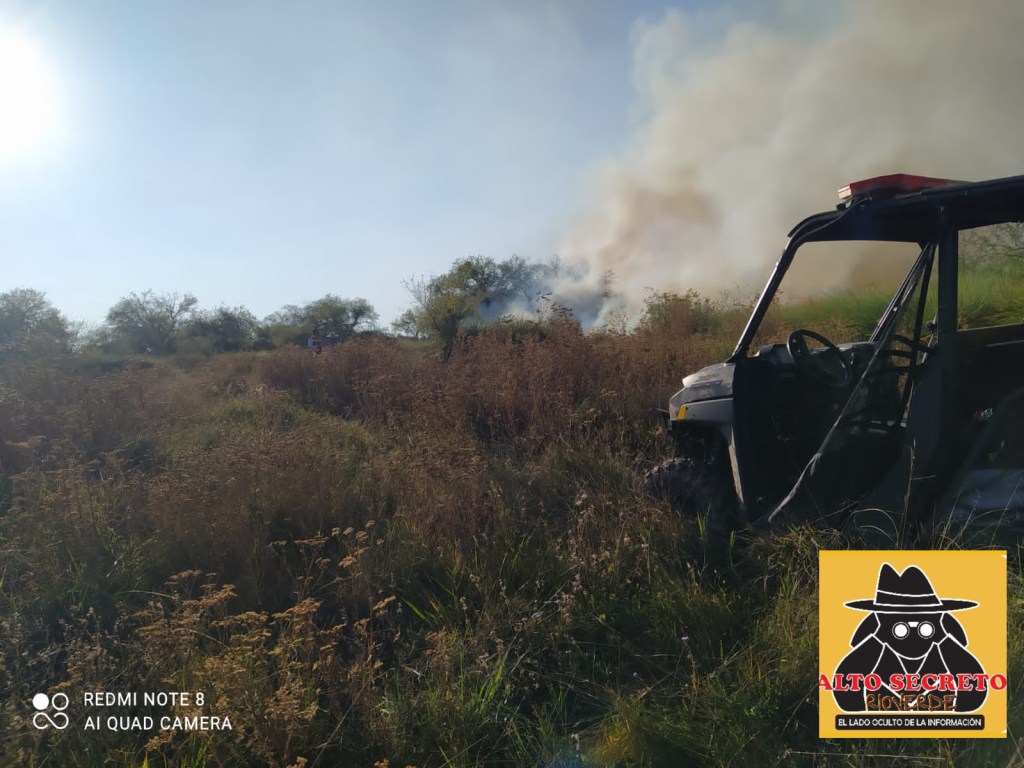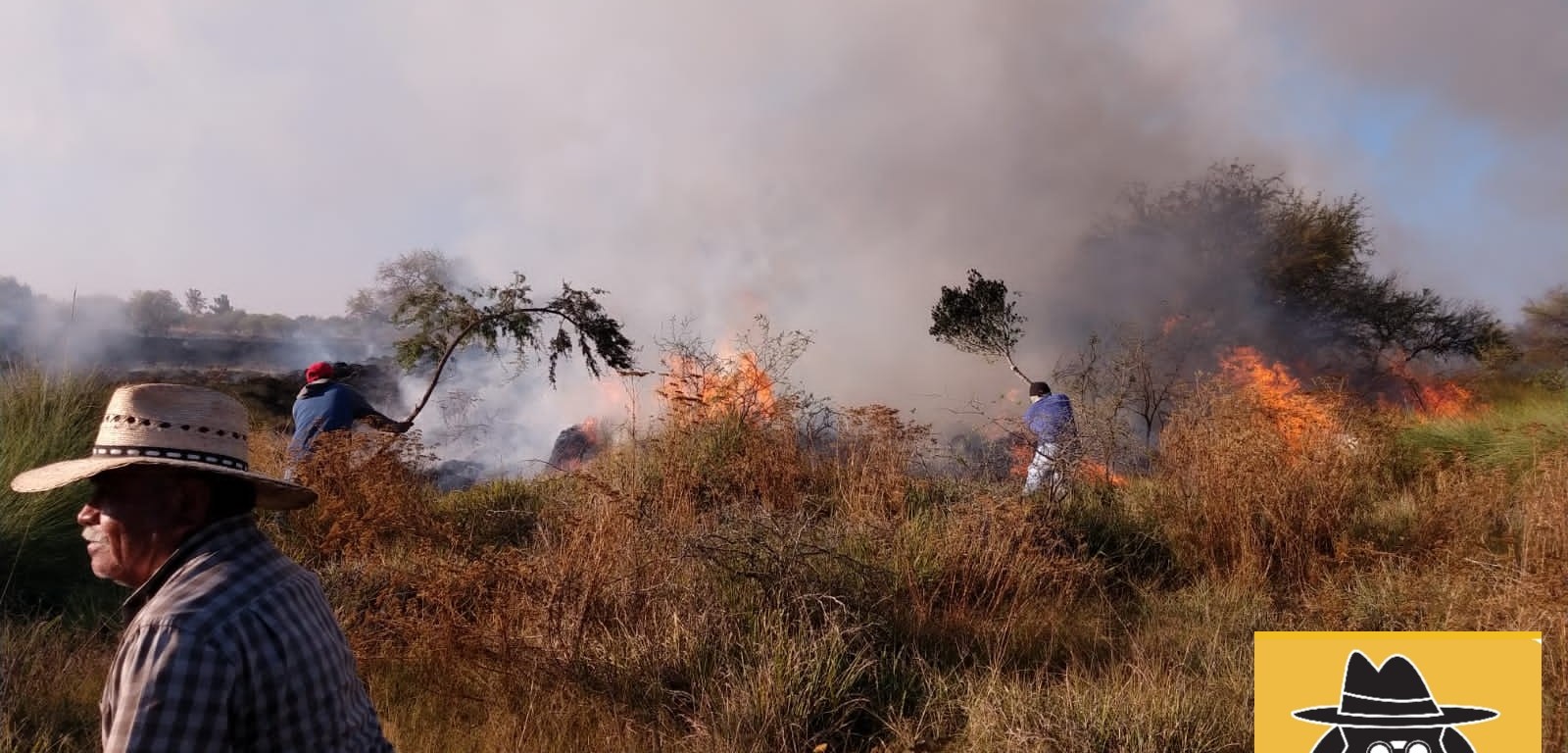 Incendio de pastizal que de manera sorpresiva se registró en las inmediaciones del Manantial de Los Peroles, ubicado en la región del llano del Municipio de Rioverde, fué sofocado gracias a la intervención de habitantes de comunidades cercanas.