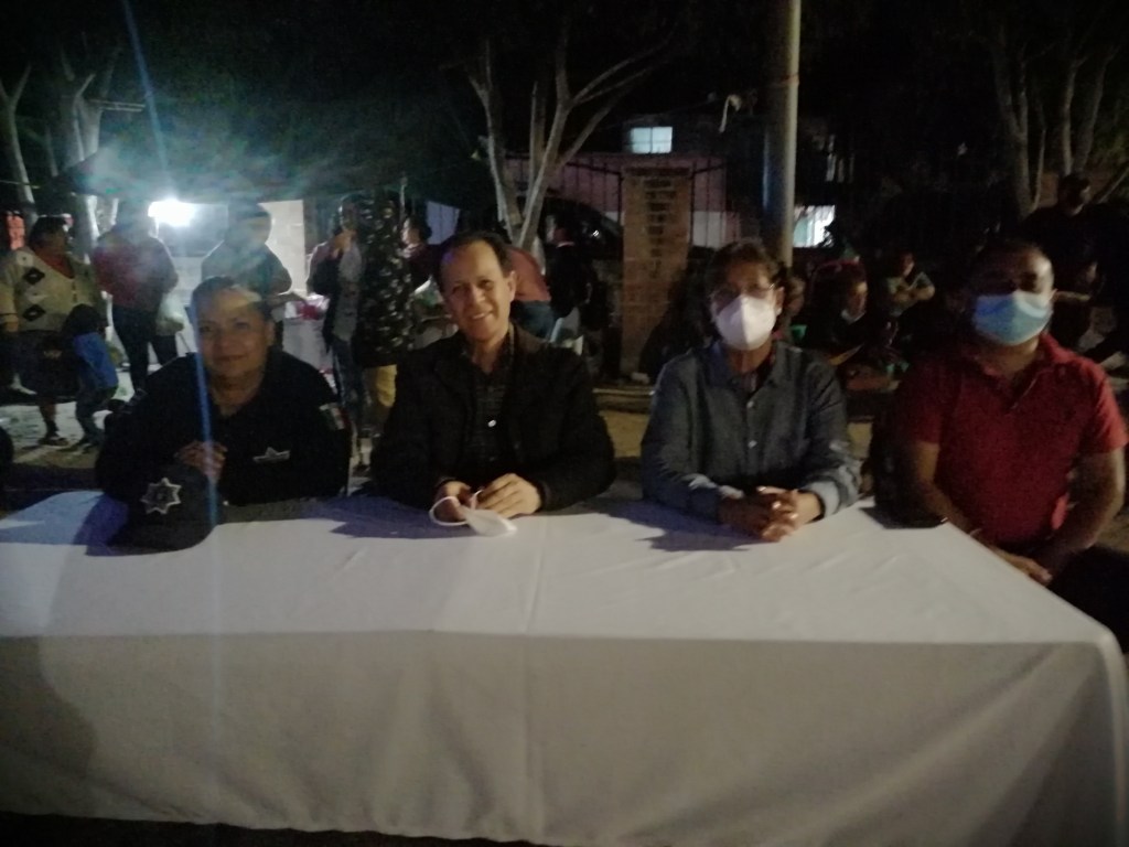 El Presidente Municipal acudió la noche de este sábado 04 de Diciembre al lugar citado, siendo acompañado de la Presidenta del Sistema Municipal para el Desarrollo Integral de la Familia, Elvia Pérez Flores, así como de la Directora de Seguridad Pública, Irma Salazar Juárez.