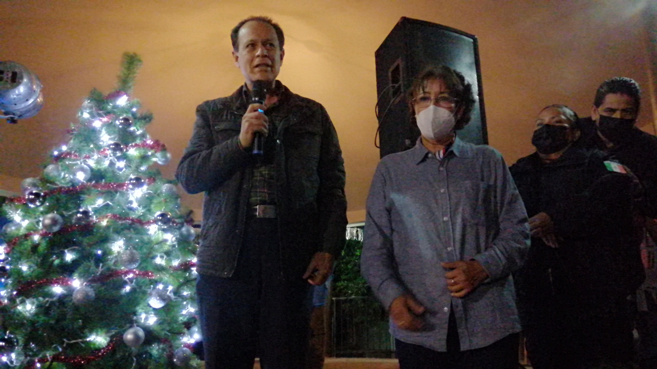 El Presidente Municipal acudió la noche de este sábado 04 de Diciembre al lugar citado, siendo acompañado de la Presidenta del Sistema Municipal para el Desarrollo Integral de la Familia, Elvia Pérez Flores, así como de la Directora de Seguridad Pública, Irma Salazar Juárez.
