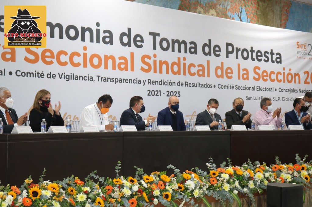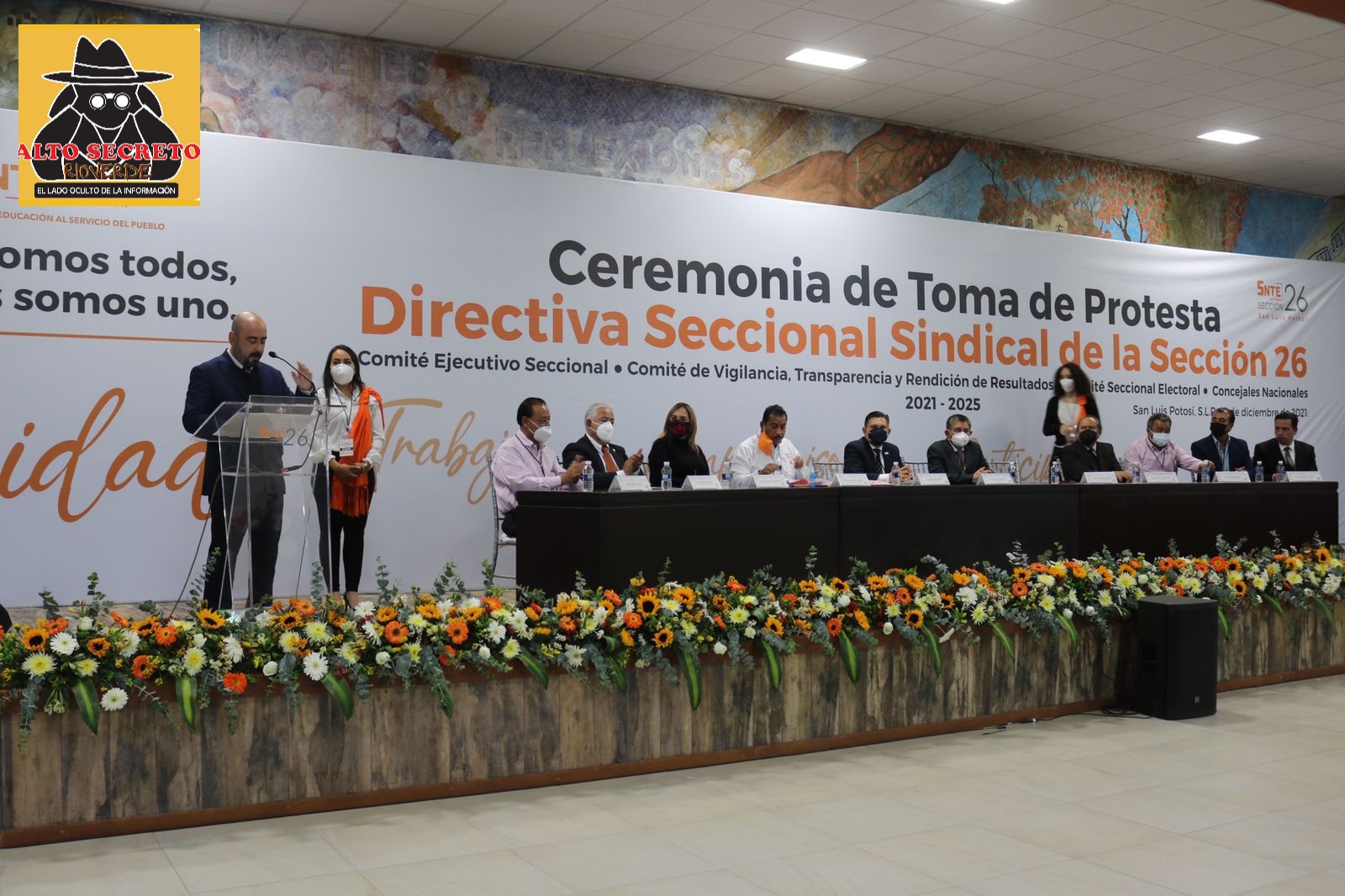 - En representación del Mandatario potosino Gallardo Cardona, el secretario de Educación Ernesto Barajas Ábrego, acudió a la toma de protesta del nuevo dirigente de la Sección 26 del Sindicato Nacional de Trabajadores de la Educación (SNTE).