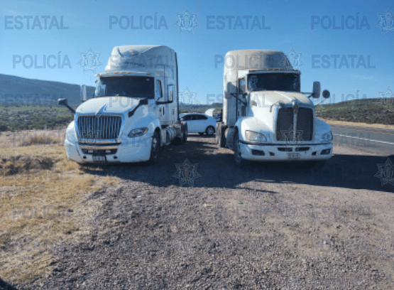 POLICÍA ESTATAL ASEGURA TRES TRACTOCAMIONES Y UNA CAJA SECA CON REPORTE DE ROBO