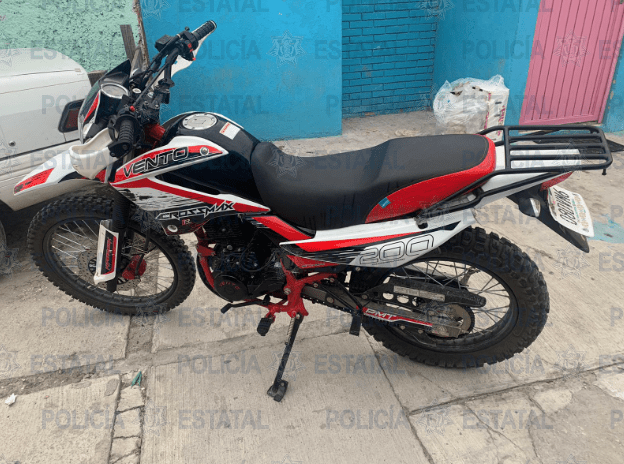 En Andador Davis, en la colonia Progreso, se localizó una motocicleta Vento, color roja, modelo 2021, la cual tiene reporte de robo vigente el 02 de diciembre de 2021, en la misma colonia.
