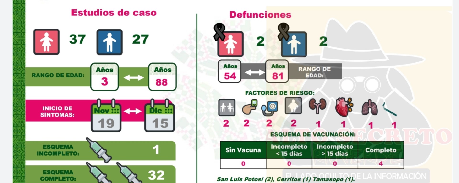En lo que al Municipio de Rioverde se refiere se mantiene con 4,438 casos positivos y 205 defunciones.