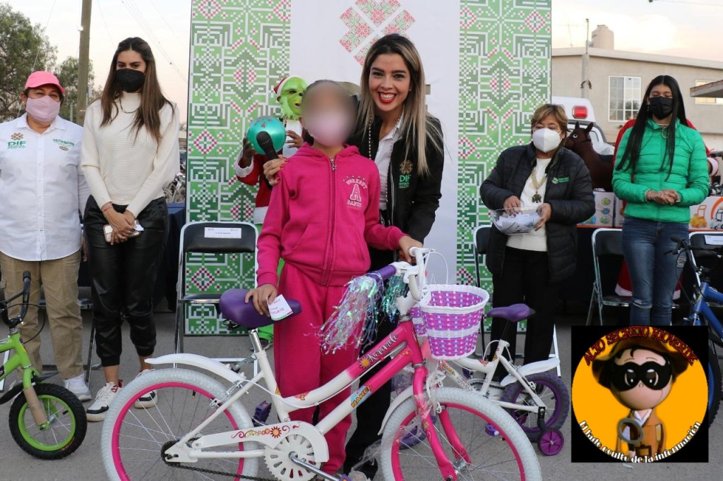 Bicicletas, pelotas, muñecas, carritos, juegos de trastes, peluches y juegos de mesa, así como dulces y fraternidad fueron entregados por brigadas del DIF Estatal en 25 comunidades de las cuatro regiones del Estado y del área infantil del Hospital Central “Dr. Ignacio Morones Prieto”.