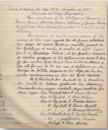 30 de Diciembre de 1900.- Reelección del Ciudadano Antonio Moctezuma, para el año de 1901 como primer regidor y Presidente Municipal de Ciudad Fernández.
