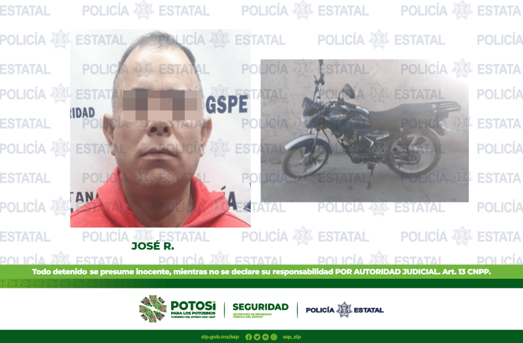 Continuando con los dispositivos en la calle Isabel Robles, en la colonia Mártires de la Revolución, los Estatales detuvieron a José R., de 43 años de edad a quien se le aseguró una motocicleta marca Italika, modelo 2018, color azul, con placa de esta entidad.