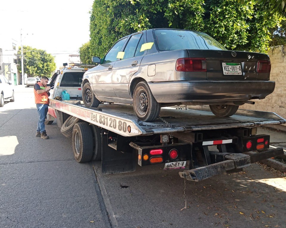 Como resultado de los dispositivos en la calle de Girasol y Prolongación Moctezuma, agentes Estatales localizaron un vehículo marca Nissan, tipo Tsuru, modelo 1990, color rojo, sin placas de identificación ni acumulador, el cual fue robado el día 22 de diciembre de 2021, de la colonia Los Reyitos.