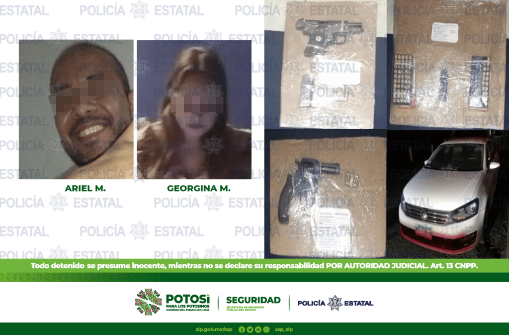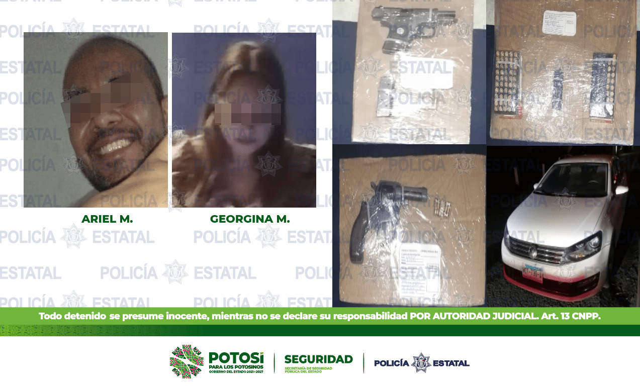 POLICÍA ESTATAL DETIENE A UN HOMBRE Y UNA MUJER CON ARMAS Y CARTUCHOS ÚTILES EN LA ZONA HUASTECA