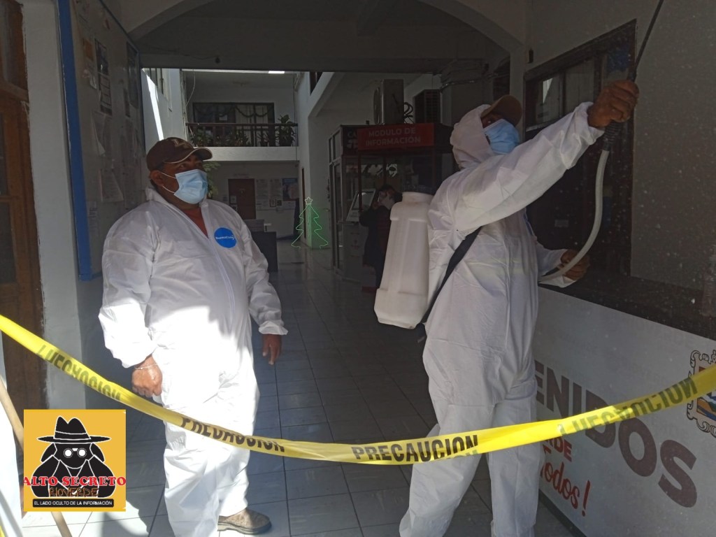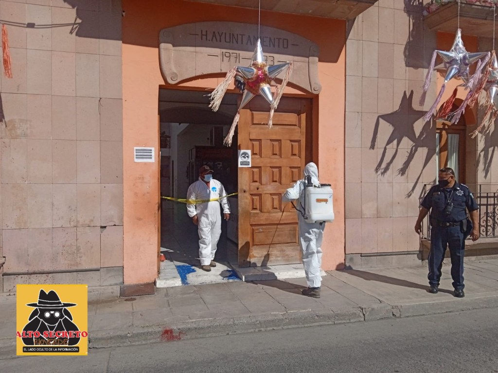 Por indicación del presidente municipal Arnulfo Urbiola Román, está tarde fue sanitizado todo el edificio donde se encuentran las oficinas gubernamentales para reforzar las acciones contra el Coronavirus Covid-19.