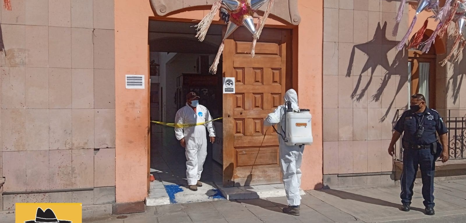 Por indicación del presidente municipal Arnulfo Urbiola Román, está tarde fue sanitizado todo el edificio donde se encuentran las oficinas gubernamentales para reforzar las acciones contra el Coronavirus Covid-19.