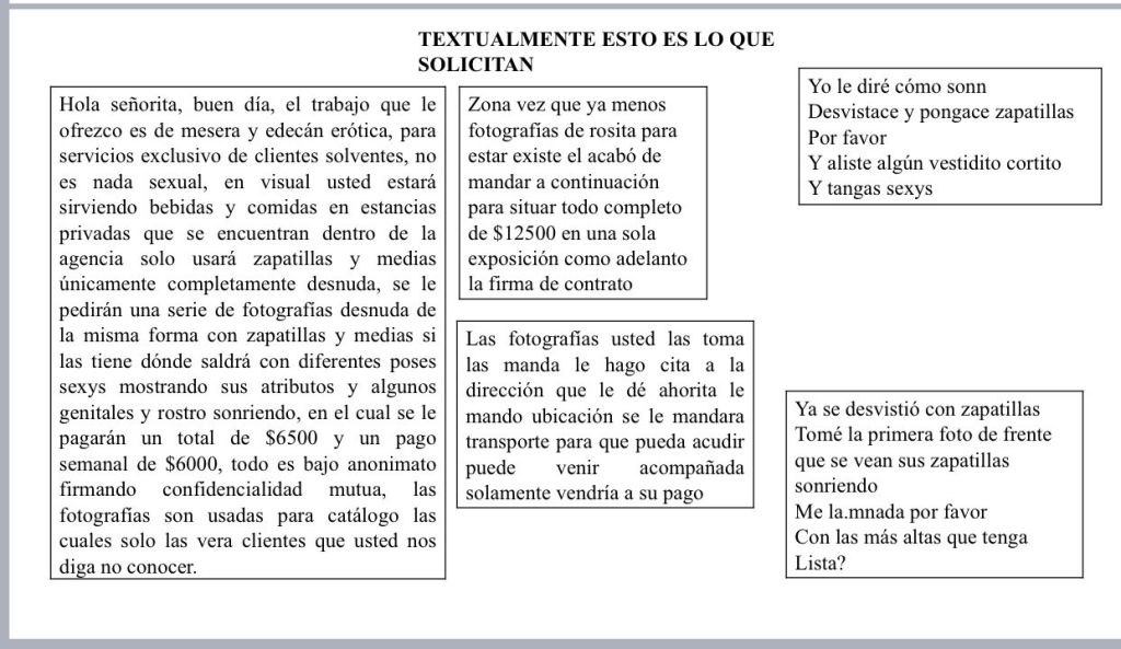 Previamente solicitan fotografías de índole sexual que presuntamente son usadas para catálogo, las cuales son para los clientes.