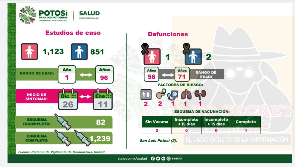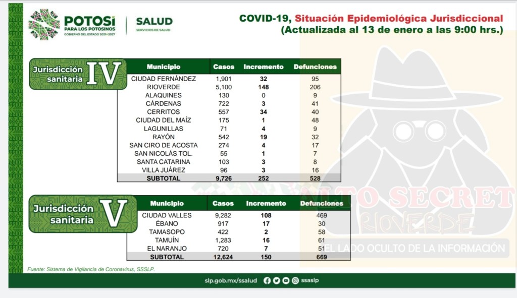 Los casos nuevos se registraron en: 148 en Rioverde, 34 Cerritos, 32 Ciudad Fernández, 19 Rayón, 04 Lagunillas, 04 San Ciro de Acosta, 03 Cárdenas, 03 Santa Catarina, 03 Villa Juárez, 01 Ciudad del Maíz y 01 en San Nicolás Tolentino.