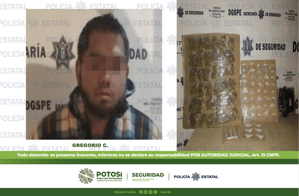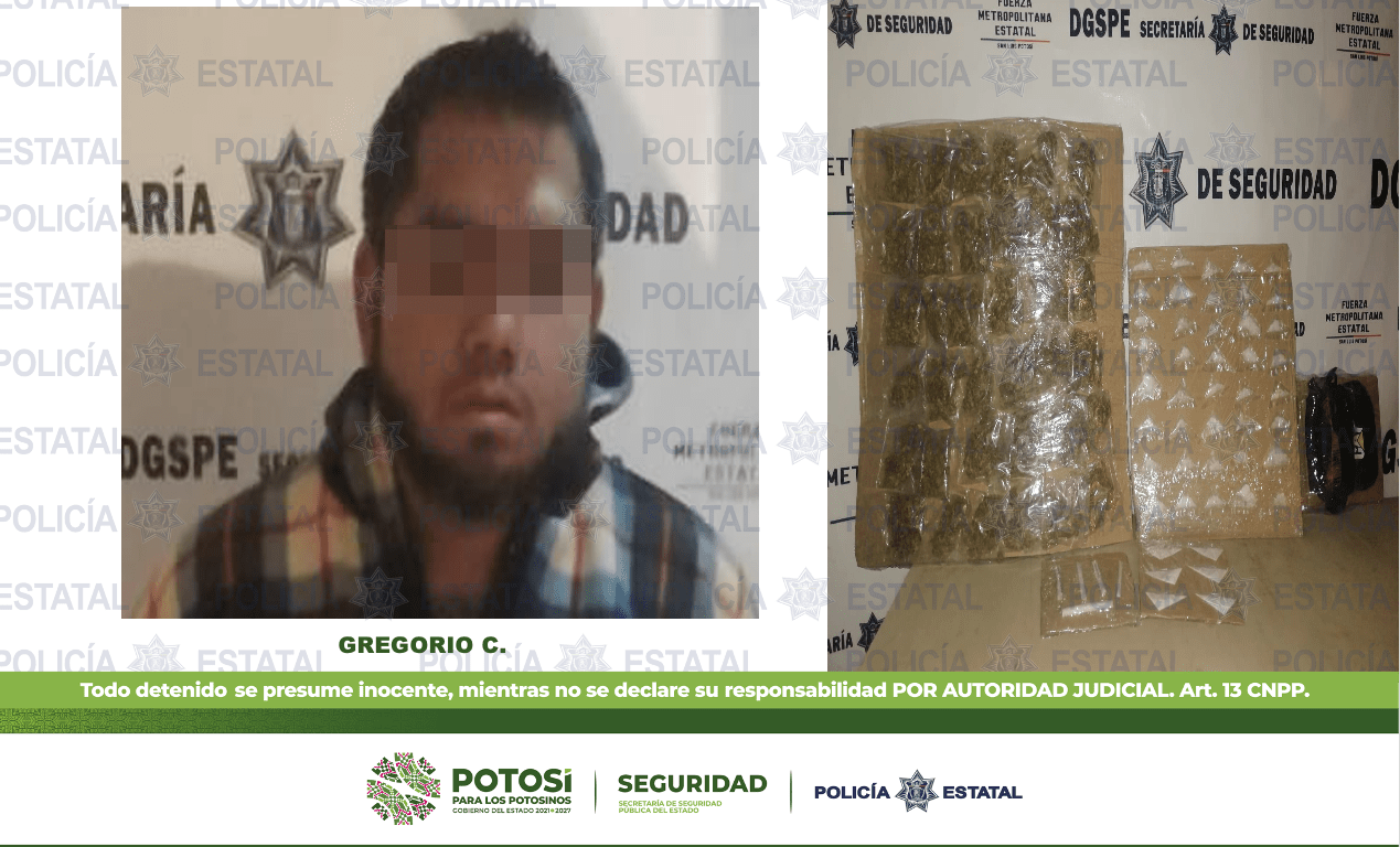 EN EL MUNICIPIO DE MATEHUALA, POLICÍAS ESTATALES DETIENEN A HOMBRE CON MÁS DE 80 DOSIS DE ENERVANTES