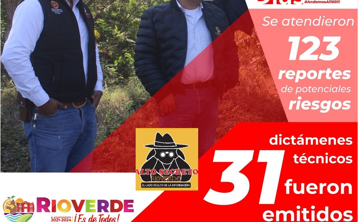 Por indicaciones del Alcalde Arnulfo Urbiola Román, la dirección de Protección Civil a cargo de José Alejandro Martínez, atendió un total de 123 reportes de alto riesgo, siendo primordial salvaguardar la integridad física de las y los ciudadanos de Rioverde.