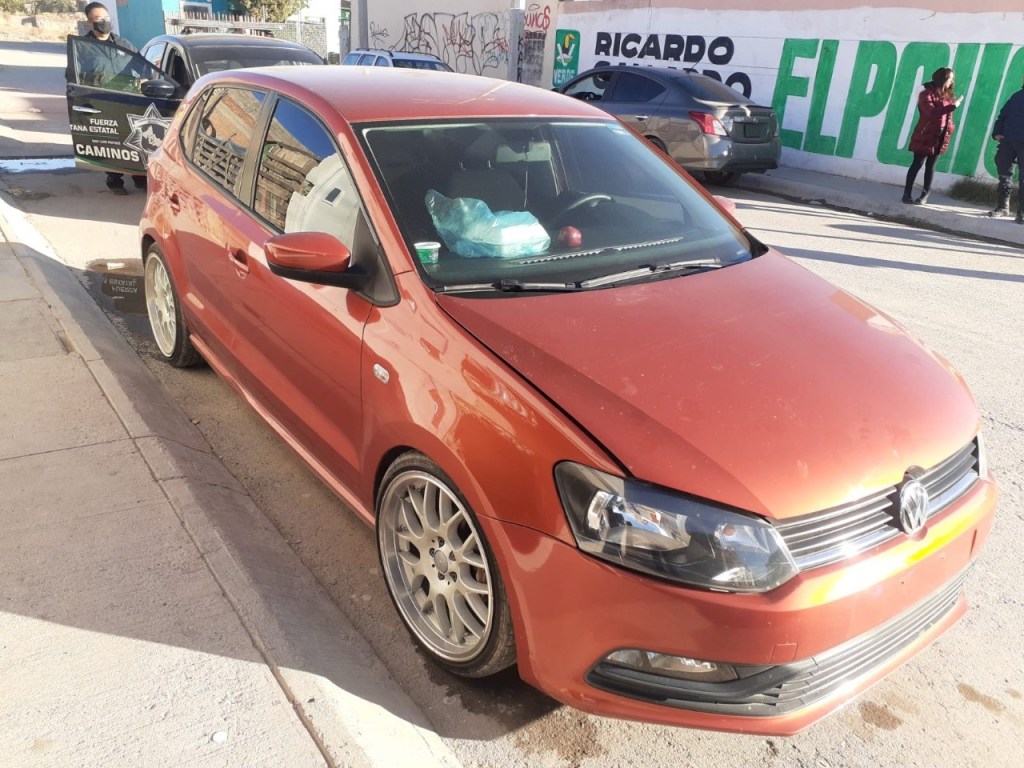 Durante los dispositivos de búsqueda implementados en las calles Valle del Señor y Vergel de la Uva, en el fraccionamiento El Vergel, se localizó un Volkswagen, tipo Polo, modelo 2015, color naranja, reportado como robado en la colonia Rancho Blanco, en Soledad de Graciano Sánchez.