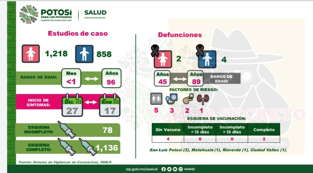 En lo que al Municipio de Rioverde se refiere suman ya 6,072 casos positivos y 209 decesos, mientras que en Ciudad Fernández se acumulan 2,189 casos positivos y 95 decesos.