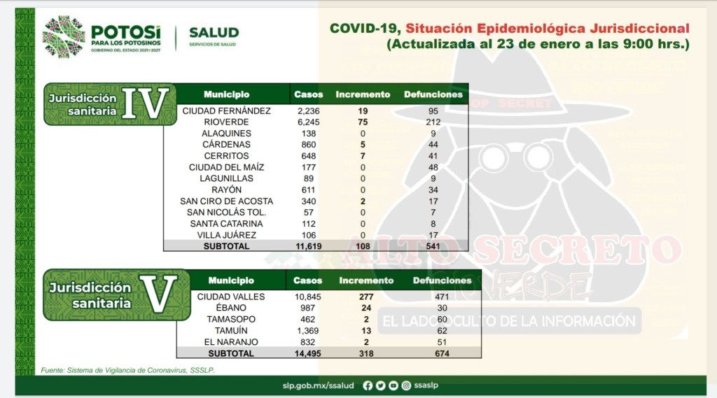 En lo que al Municipio de Rioverde se refiere suman ya 6,245 casos positivos y 212 decesos, mientras que en Ciudad Fernández se acumulan 2,236 casos positivos y 95 decesos.
