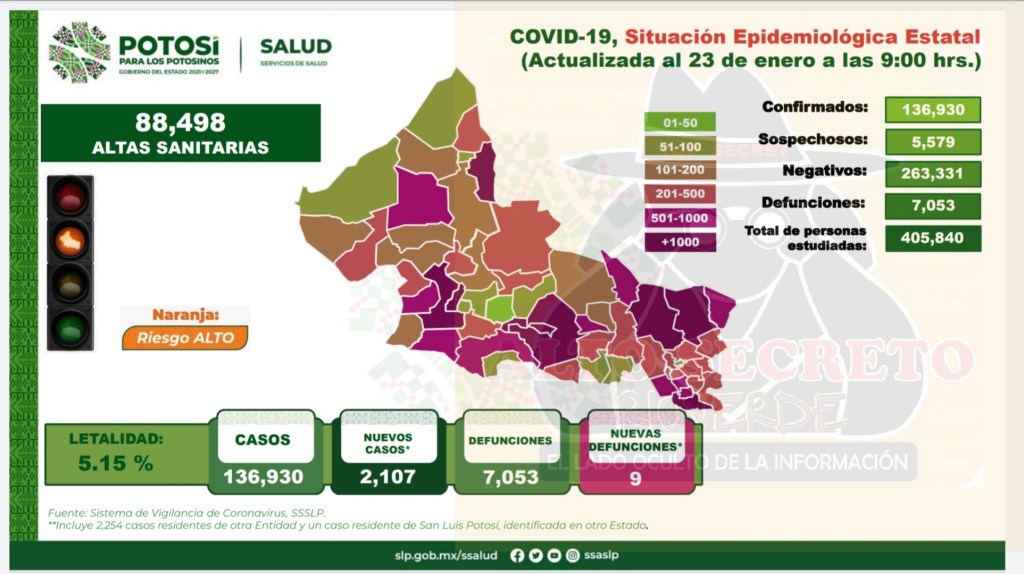 Los nuevos casos se reportaron en: 75 casos en Rioverde, 19 en Ciudad Fernández, 07 en Carritos, 05 en Cárdenas y 02 en San Ciro de Acosta.