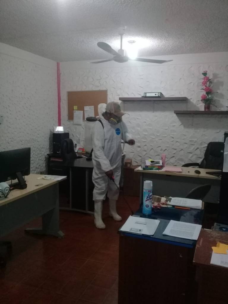 Continuando con los trabajos de sanitización, personal especializado acudió a oficinas y áreas del Parque Revolución Puente del Carmen (Parepuca), del Desarrollo Integral de la Familia (DIF) así como la Unidad Básica de Rehabilitación (UBR).