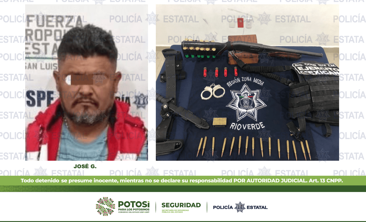 El hecho se registró durante trabajos operativos en las calles de José López Portillo y Adolfo Ruiz Cortines, en la colonia Bondojo, ahí agentes Estatales detuvieron a José G., de 41 años de edad, a quien le aseguraron una escopeta, además de 80 cartuchos útiles de diferentes calibres, un par de candados de mano, un cuchillo de aproximadamente 18 centímetros, así como un chaleco táctico con la leyenda de “Ejército Mexicano”. También se le aseguró la unidad en la que se trasladaba, siendo esta una camioneta Ford, tipo Bronco, color gris, modelo 1990.
