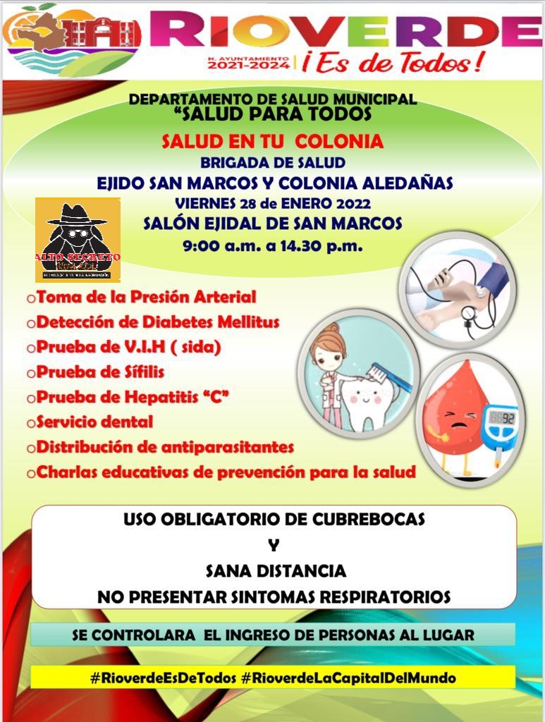 Por instrucciones del Alcalde Arnulfo Urbiola Román y debido a la respuesta favorable de la población a las Jornadas o Brigadas Médicas implementadas en la zona urbana y rural, el próximo viernes 28 de Enero se desarrollará otro acercamiento más con habitantes del ejido San Marcos.