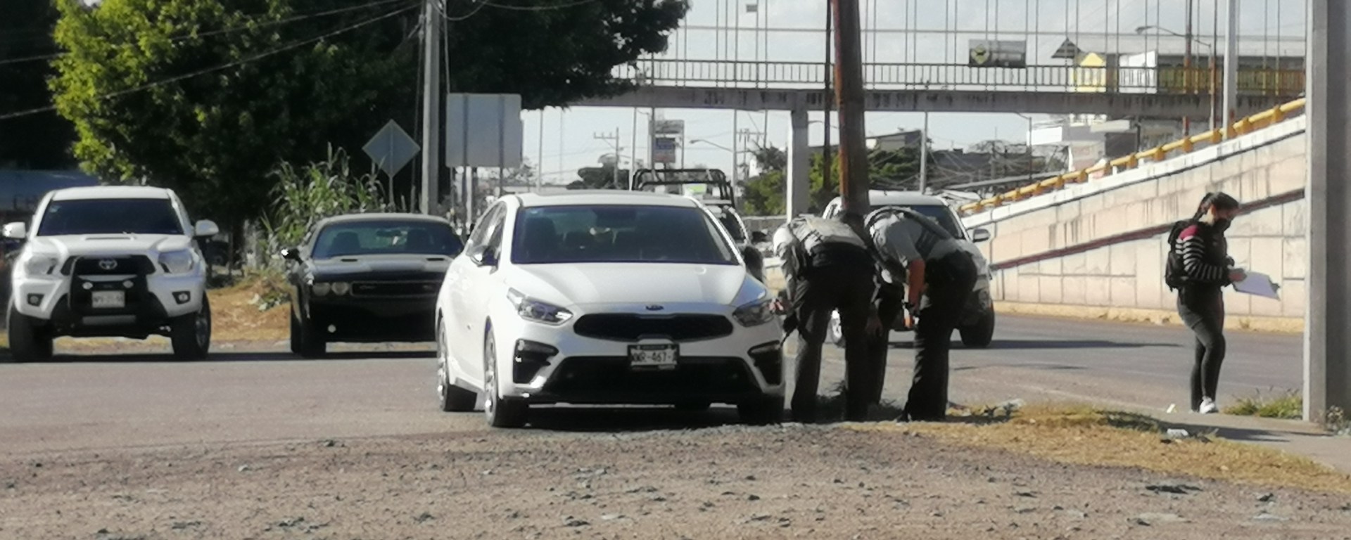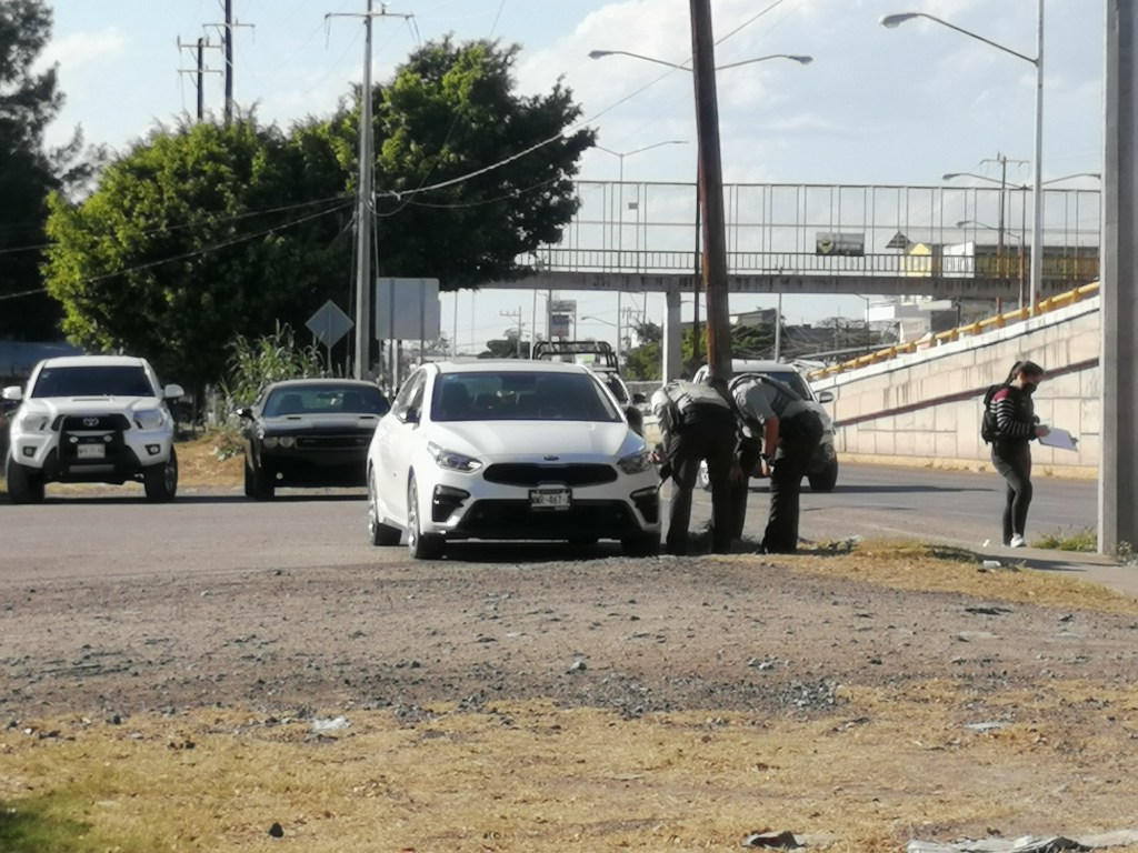 Policías de Investigación de la Zona Media (PDI) acudieron al sitio que se ubica en la calle Cielo Azul de la colonia Vista Hermosa y encontraron un automóvil Kia, tipo Forte, modelo 2020, color blanco, con diversos impactos de arma de fuego.