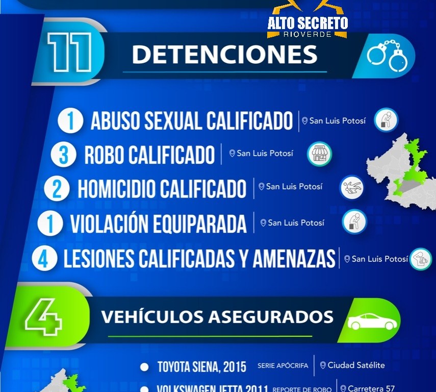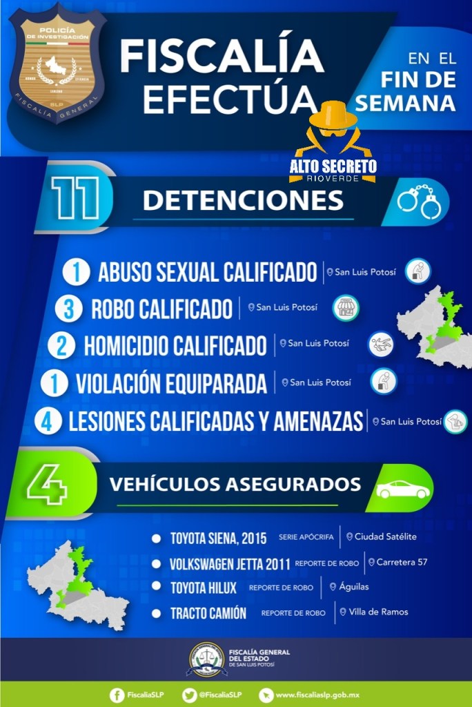 Durante el fin de semana, la Fiscalía General del Estado (FGE) realizó la aprehensión de once personas, quienes presuntamente están involucradas en diferentes delitos ocurridos en San Luis Potosí y Soledad de Graciano Sánchez.