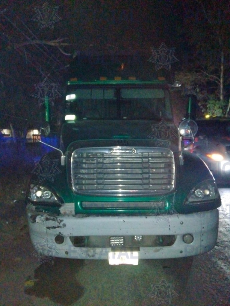 Fue en el Eje 128 y Avenida Industrias, en donde los elementos Estatales tuvieron a la vista un tractocamión marca Freightliner, color verde, con placas de identificación de esta entidad, el cual se encontraba en aparente estado de abandono, con una de sus puertas abiertas y desorden en su interior.
