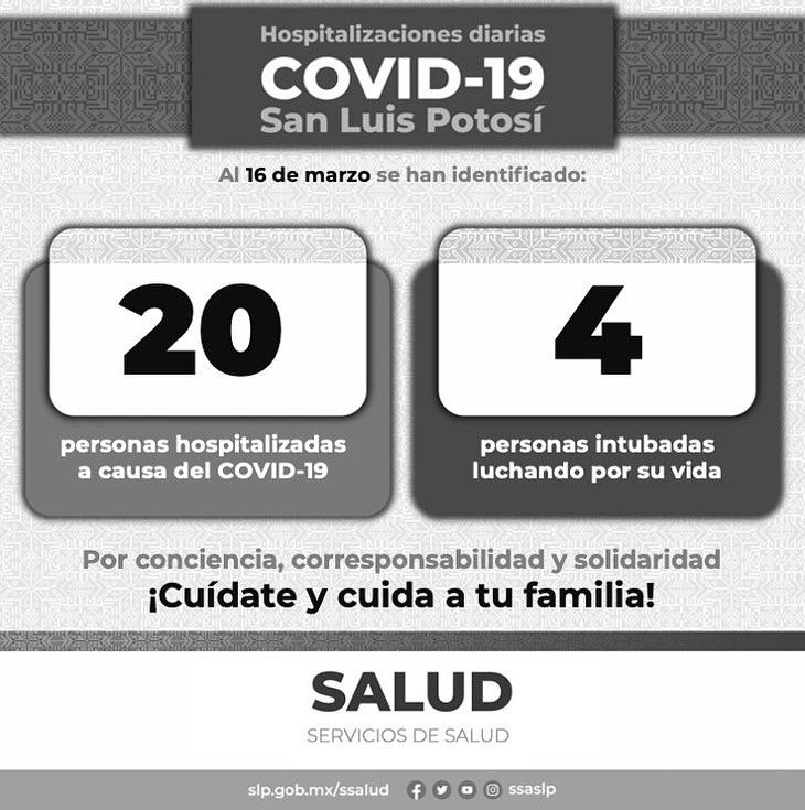 - En SLP, se mantiene baja la hospitalización, decesos y los casos también han disminuido.