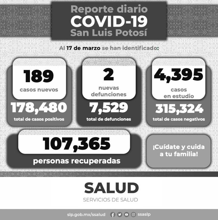 En cuanto al Informe Diario de casos Covid-19, se dan a conocer 189 nuevos contagios confirmados en la Entidad. De esta forma, el Comité Estatal para la Seguridad en Salud y los Servicios de Salud informan que, hasta este día se registran 178 mil 480 casos totales de este padecimiento.