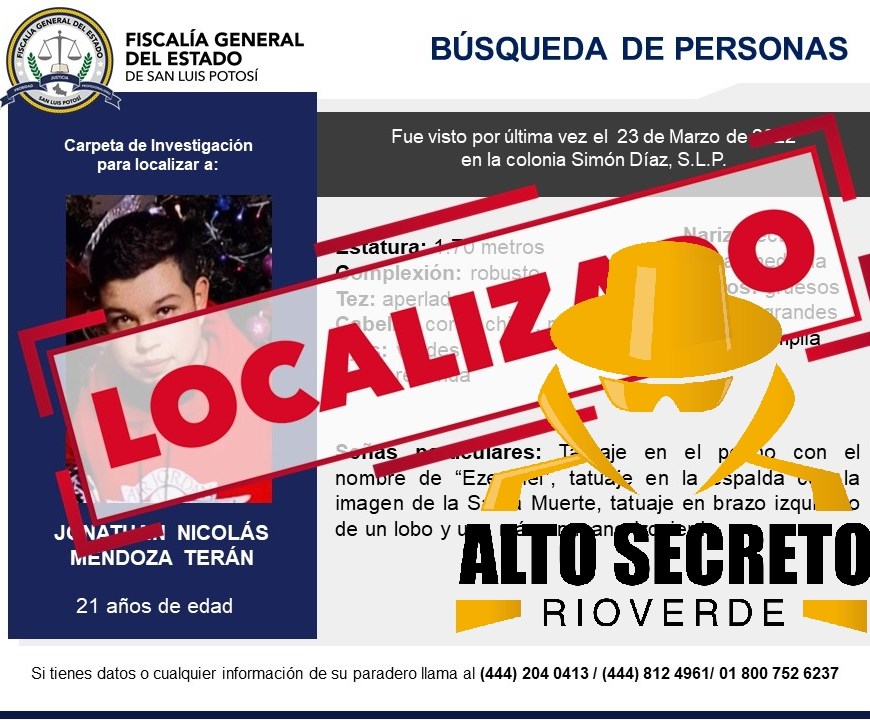 LOCALIZAN A JOVEN DE 21 AÑOS DESAPARECIDO EN SLP