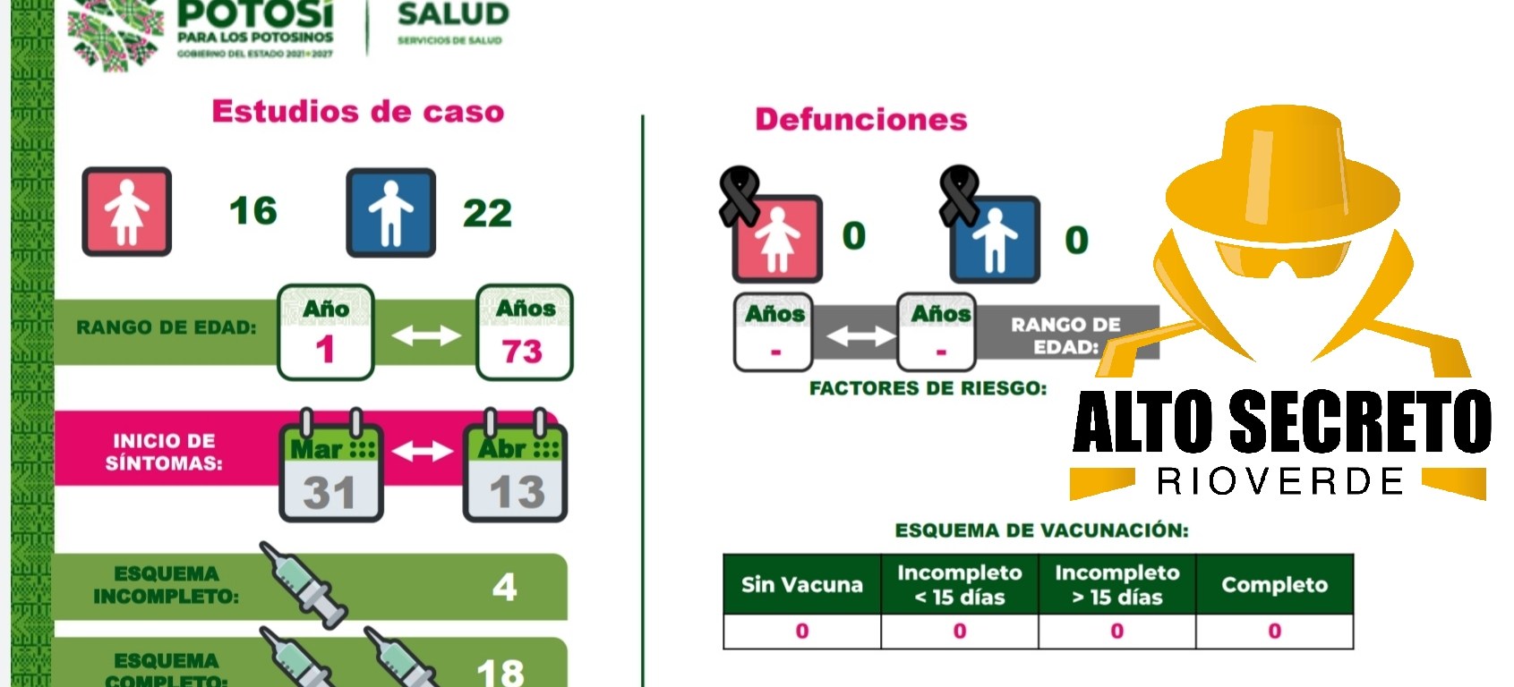 En cuanto a decesos, no se reporta ninguno, por lo que la cifra total de muertes en el Estado se mantiene en 7 mil 550. Sobre los estudios de caso nuevos, 16 corresponden a mujeres y 22 a hombres, en un rango de 1 a 73 años de edad. Para este 16 de abril, se encuentran 11 personas hospitalizadas, de las que tres requieren de respiración asistida.