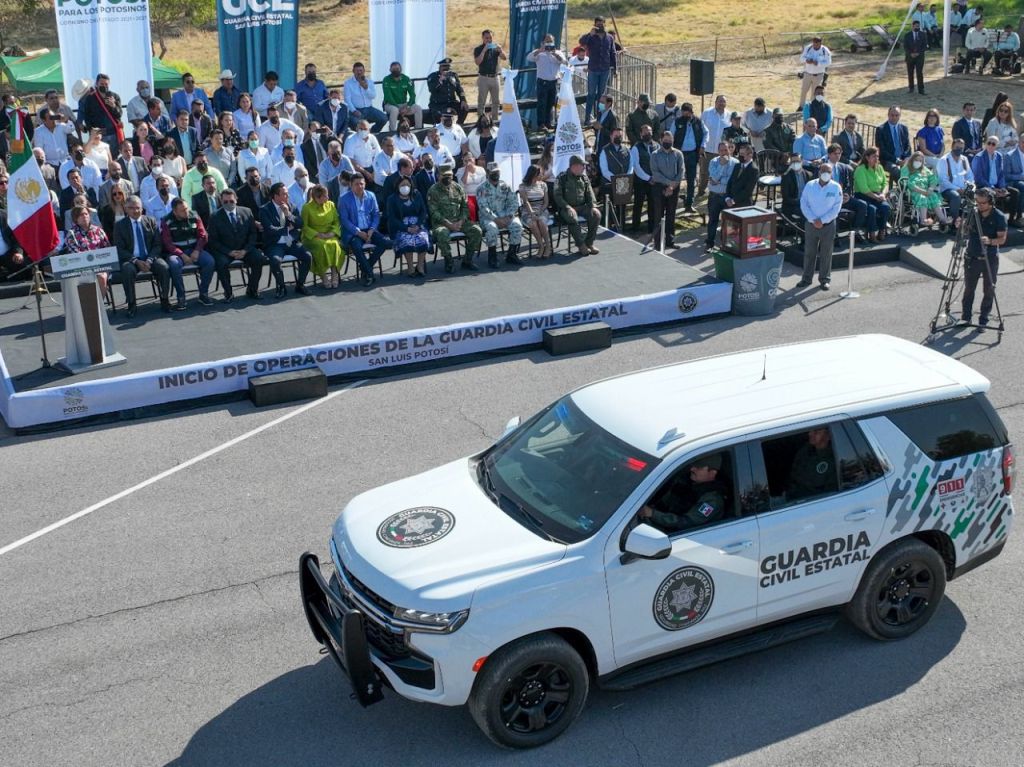El Gobernador del Estado, Ricardo Gallardo Cardona, presentó oficialmente a las y los potosinos la Guardia Civil Estatal, “el brazo fuerte” de la ahora Secretaría de Seguridad y Protección Ciudadana, en las instalaciones del Parque Tangamanga Uno, misma que a partir de hoy recorrerá las calles, colonias, comunidades, localidades y todo rincón de las cuatro zonas del territorio, con el único objetivo de erradicar la incidencia delictiva.