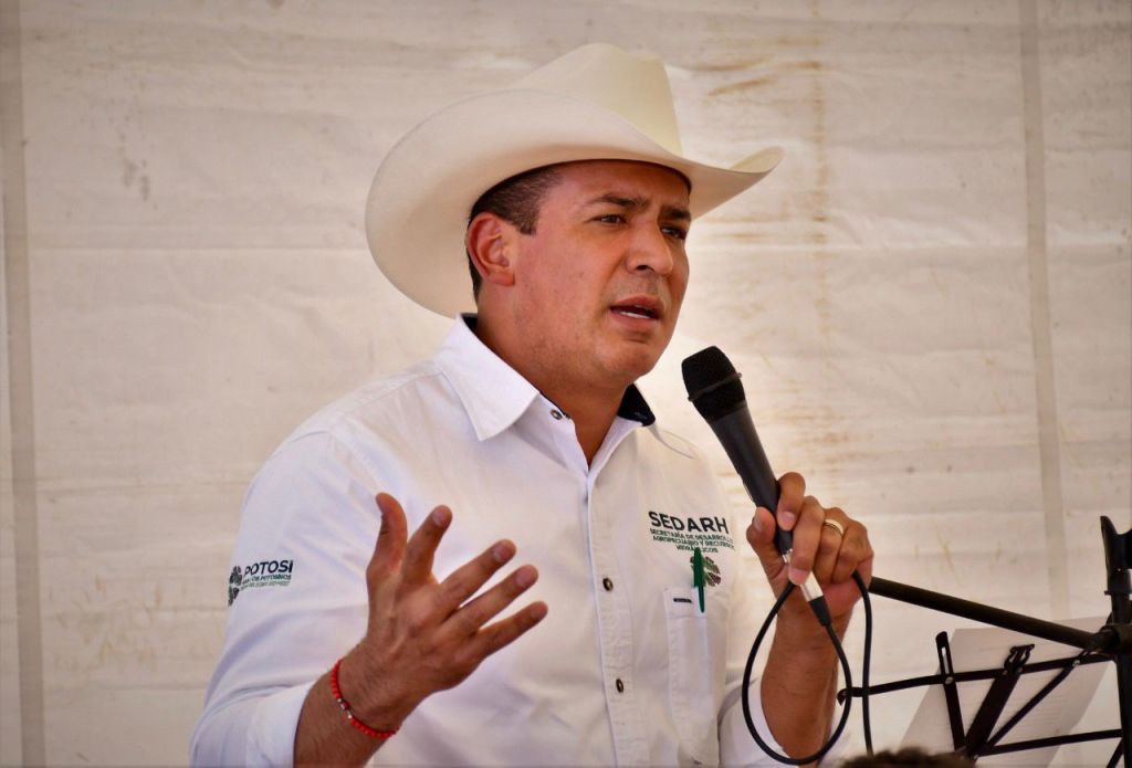 Refirió que, a ocho meses de trabajo, se han visitado y otorgado múltiples apoyos que favorecen cultivos de calidad, mejoramiento genético de las especies de ganado y al aprovechamiento de los recursos con equipos y maquinaria tipo D-6 en la reparación de bordos de abrevadero, presas y cauces, en diversos municipios de la Huasteca, Altiplano y zona Media.