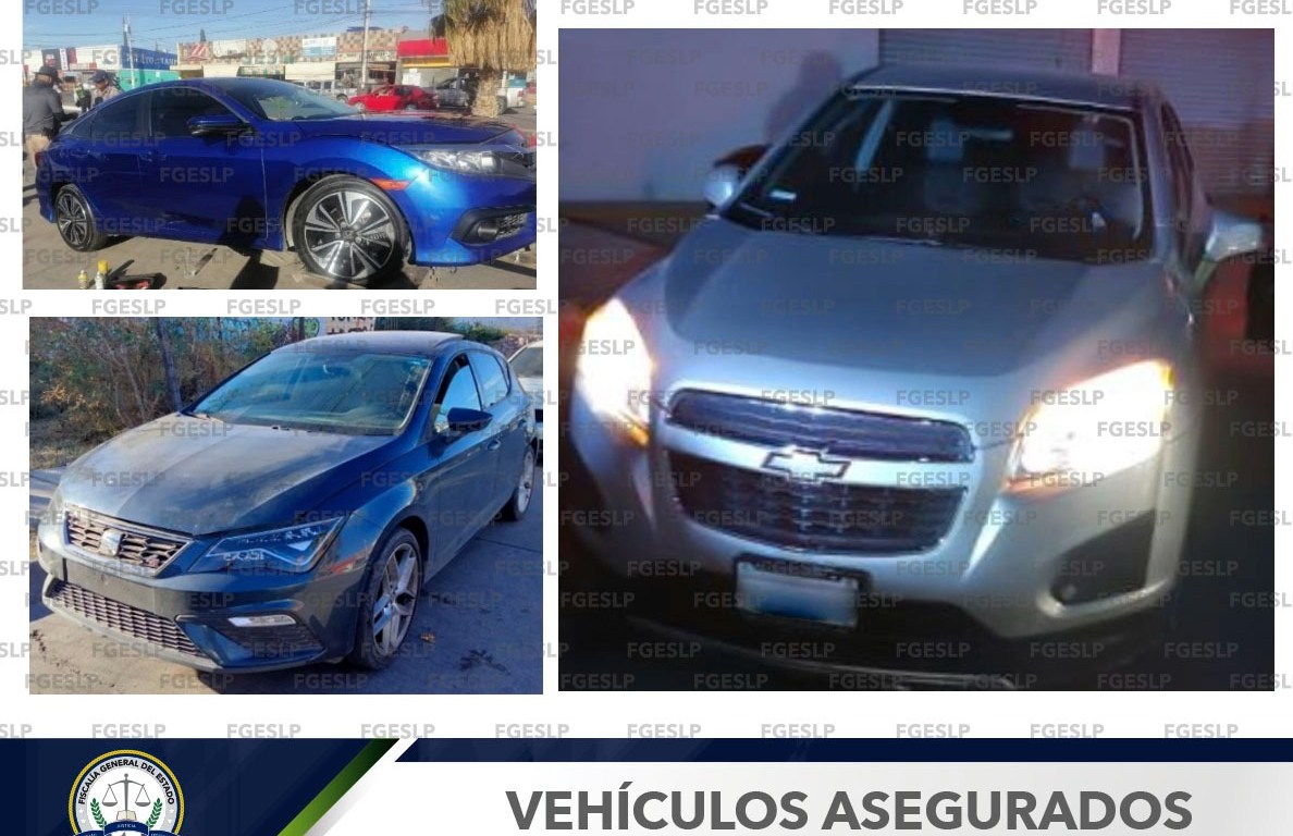 En operativos efectuados en la ciudad de San Luis Potosí y en Soledad de Graciano Sánchez, la Fiscalía General del Estado (FGE) recuperó tres vehículos con reporte de robo vigente y con alteraciones en la serie.