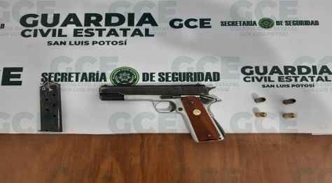 Al llevar a cabo una inspección, al presunto se le aseguró un arma de fuego tipo escuadra, calibre .45 y un cargador abastecido con cuatro cartuchos útiles. Por tales hechos Alejandro de 29 años de edad fue informado del presunto delito en el que incurría y del motivo de su detención.