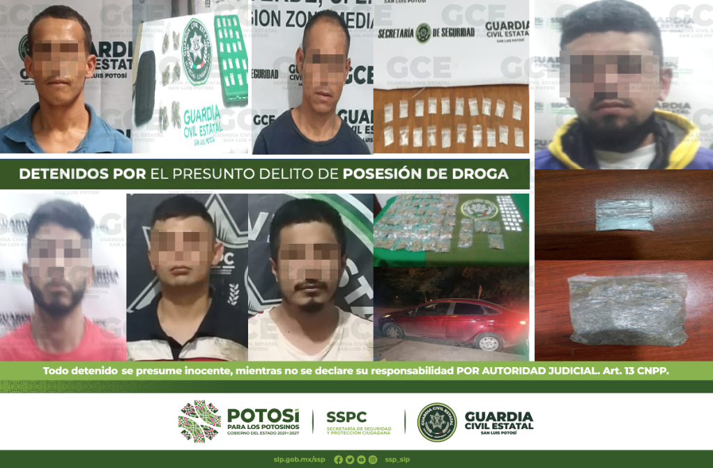 255 DOSIS DE ESTUPEFACIENTES FUERON ASEGURADAS POR GUARDIA CIVIL ESTATAL; HAY 11 PERSONAS DETENIDAS