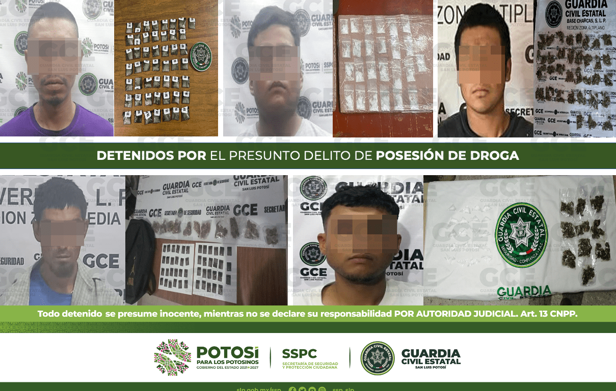 Los detenidos y la droga asegurada quedaron a disposición de la Fiscalía General del Estado para los procedimientos que considere pertinentes.