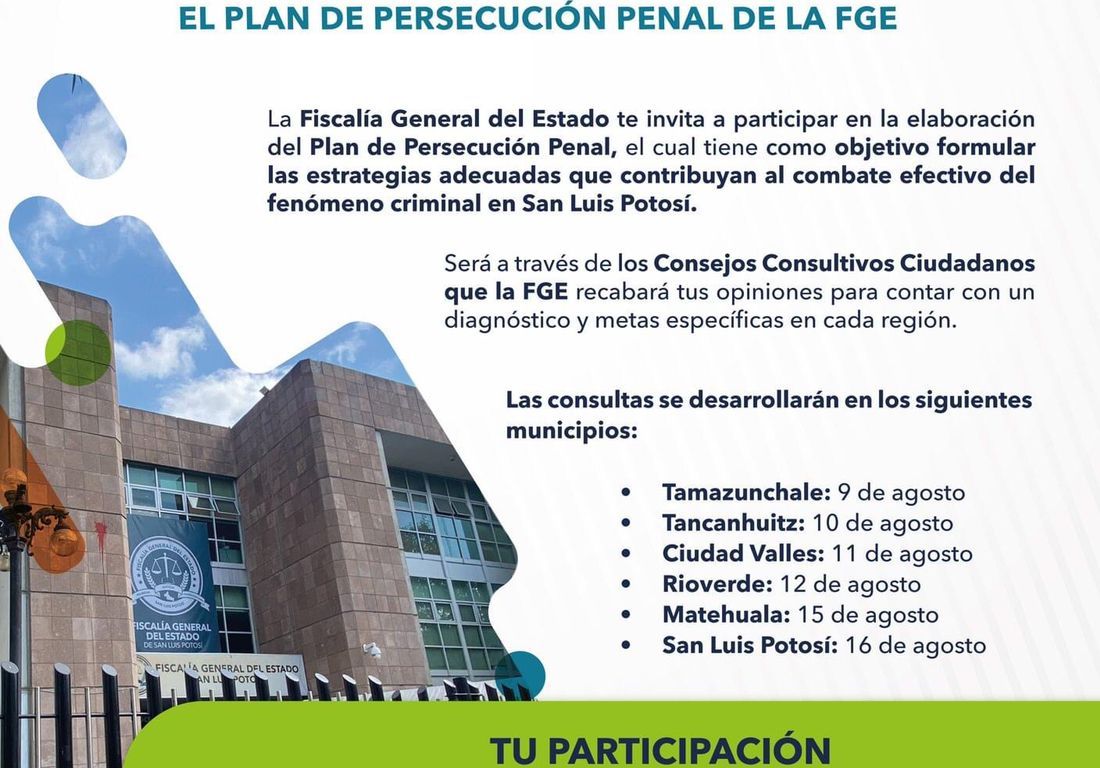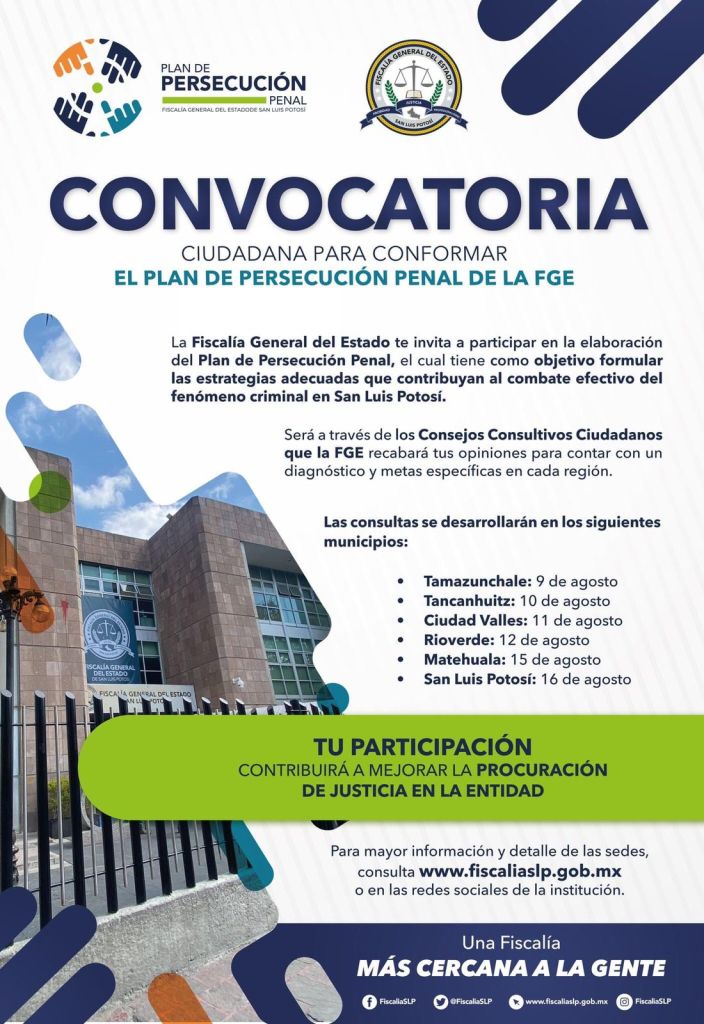 Para ser parte de este ejercicio de participación ciudadana es necesario ingresar a http://www.fiscaliasslp.gob.mx o a las redes sociales de la Institución.