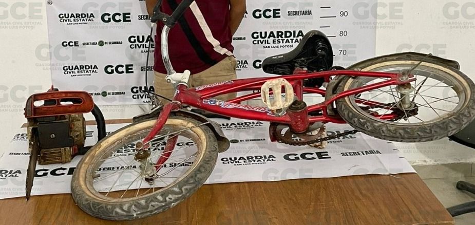 Tras el reporte, los oficiales de la GCE acudieron a un domicilio ubicado en la Privada del Sol en el Barrio Primero en la comunidad El Refugio, donde detuvieron a joven de 17 años de edad por hurtar una motosierra y una bicicleta, señalando la víctima su interés de proceder legalmente en contra del presunto.