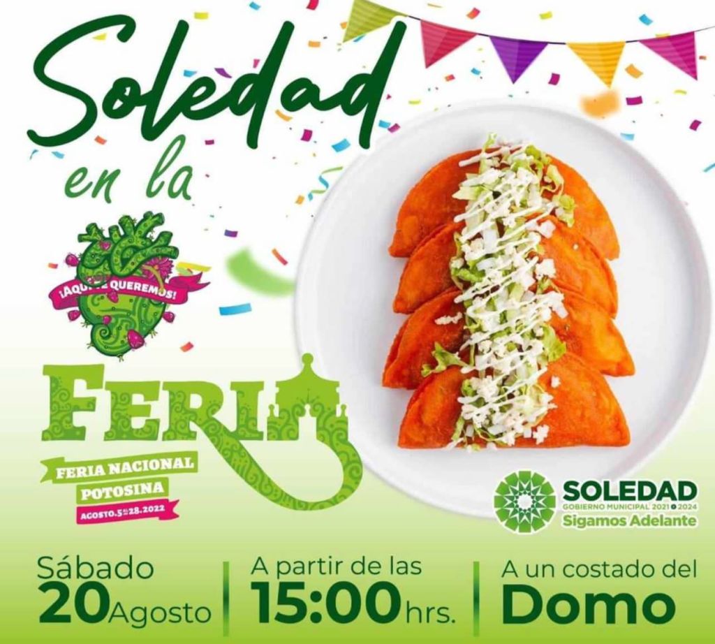 El próximo 20 de agosto será el turno de Soledad de Graciano Sánchez, que ofrecerá enchiladas potosinas, platillo típico y originario de la demarcación. La convivencia se llevará a cabo a partir de las 15:00 horas en la antigua explanada de la Plaza del Mariachi, a un costado del Palenque, para evitar aglomeraciones y posibles accidentes por concentración de gente se entregará un boleto.