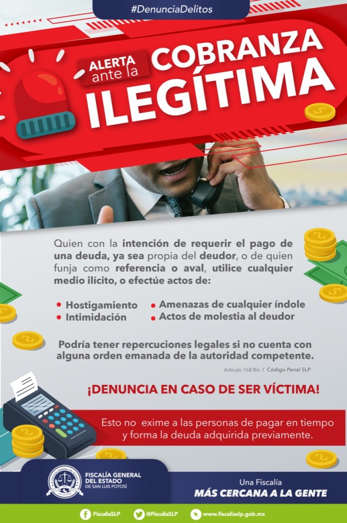 El Fiscal General del Estado, José Luis Ruiz Contreras, dio a conocer que en caso de que alguna persona sea amedrentada o amenazada por empresas con las que se haya contraído una deuda, se pueden denunciar de manera penal, ya que son métodos no permitidos por la ley.