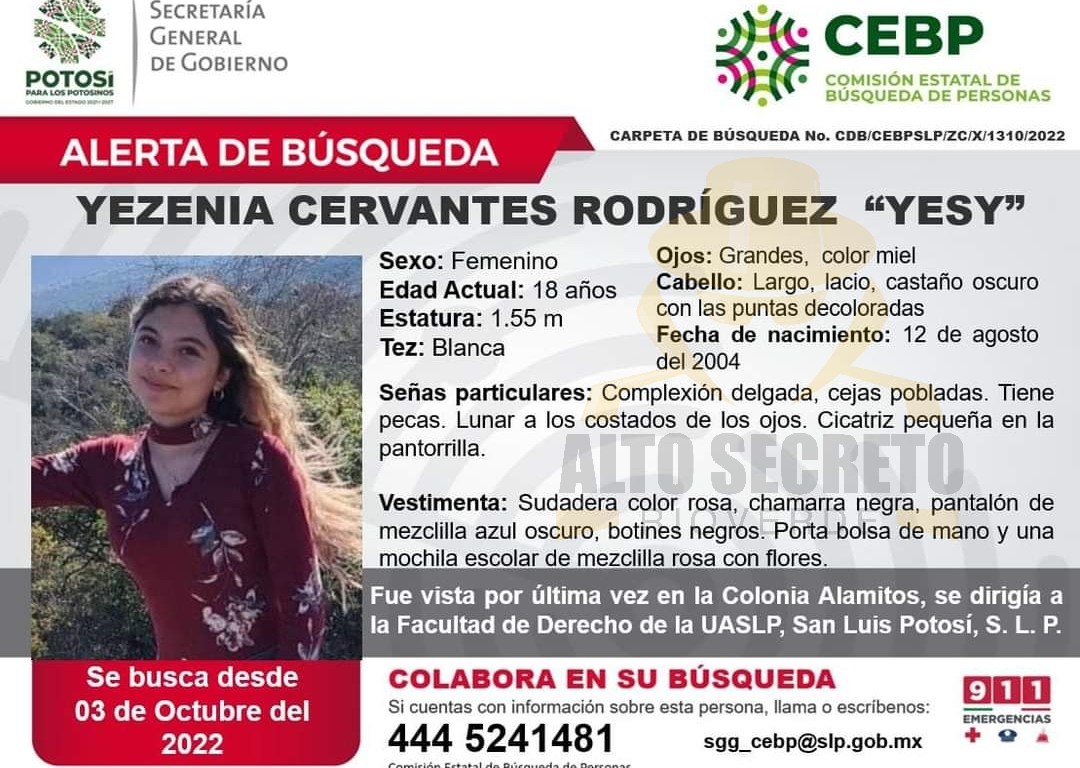 Sobre la no localización de una estudiante de la Facultad de Derecho de la Universidad Autónoma de San Luis Potosí (UASLP), la Fiscalía General del Estado (FGE) informó que continúan las labores para su ubicación.