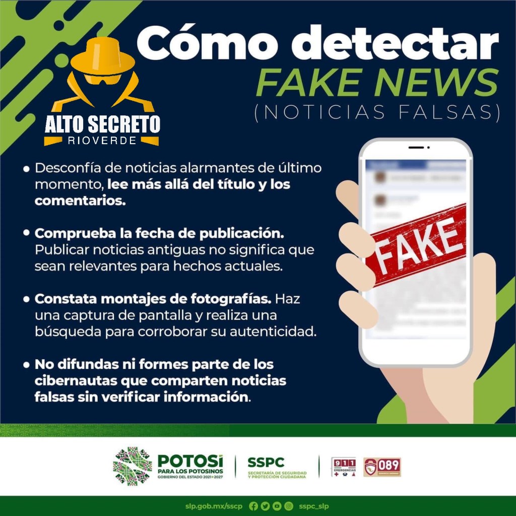 La Secretaría de Seguridad y Protección Ciudadana Estatal exhorta a la ciudadanía de San Luis Potosí, no caer en actos de desinformación respecto a situaciones de seguridad que circulan en redes sociales.