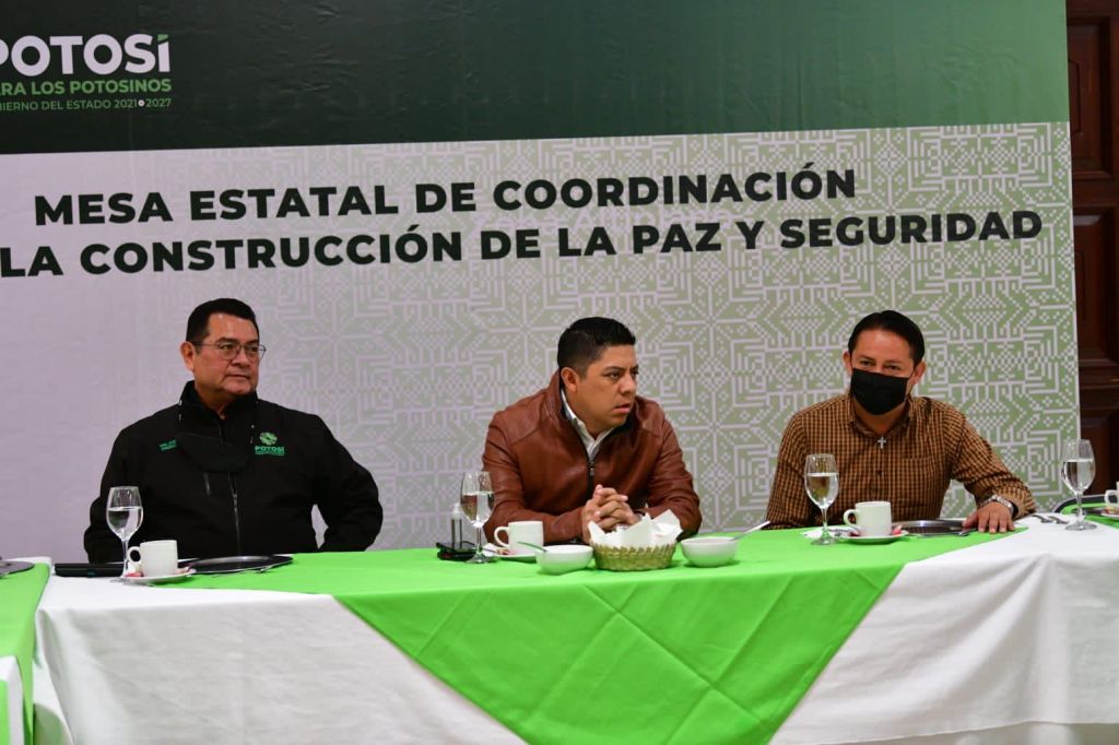 Durante la Mesa de Coordinación para la Construcción de la Paz y Seguridad celebrada este día en el municipio vecino a la capital potosina, Mexquitic de Carmona, se acordó mayores esfuerzos de coordinación con para fortalecer operativos de seguridad y vigilar la paz social, con la participación del Ejército Mexicano, Guardia Nacional, Guardia Civil Estatal y la policía municipal.