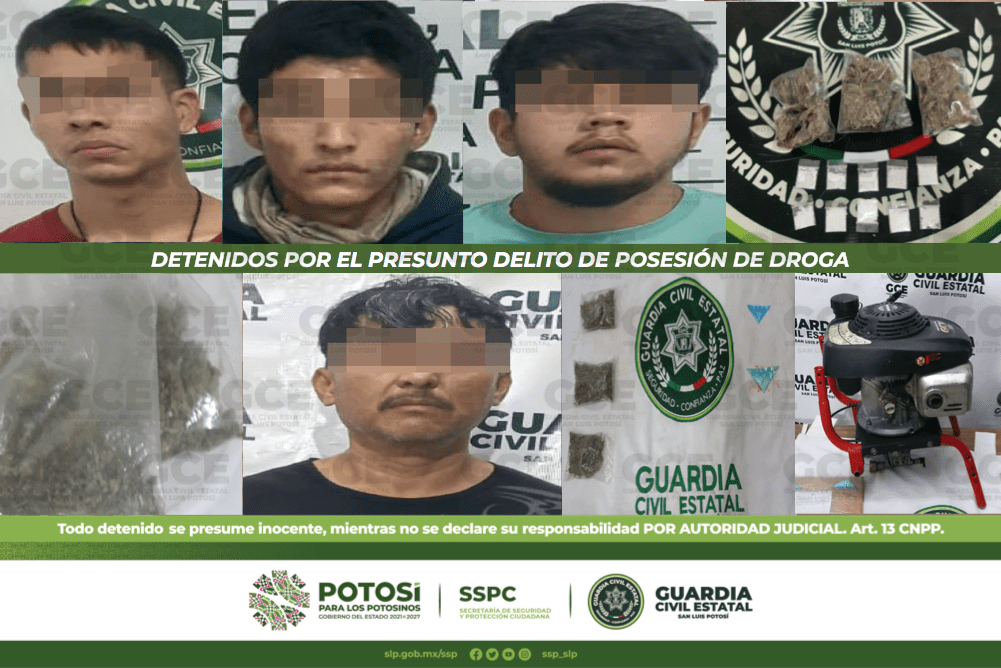 – Como resultado de la reacción inmediata a situaciones que ponen en riesgo la seguridad pública de las y los potosinos, así como de las estrategias de vigilancia trazadas dentro del Plan Operativo “Otoño-Invierno 2022”, en distintas acciones, agentes de la Guardia Civil Estatal (GCE) detuvieron a 17 personas por el presunto delito de posesión de droga.