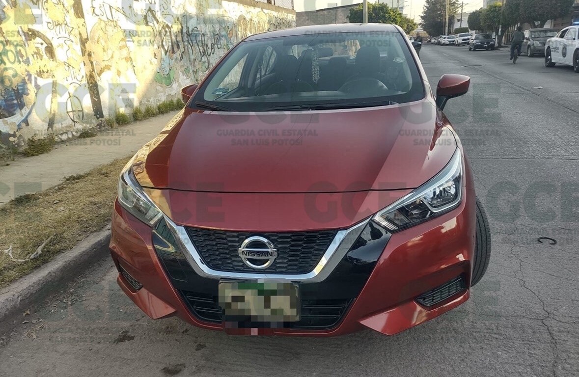 El Operador Interviniente del Centro de Control, Comando, Comunicaciones y Cómputo (C-4), refirió a los elementos de la GCE que el vehículo marca Nissan, tipo Sentra, color rojo, modelo 2021, con placas de circulación de esta Entidad federativa, contaba con reporte de robo del 12 de enero de 2023 del fraccionamiento Constitución.