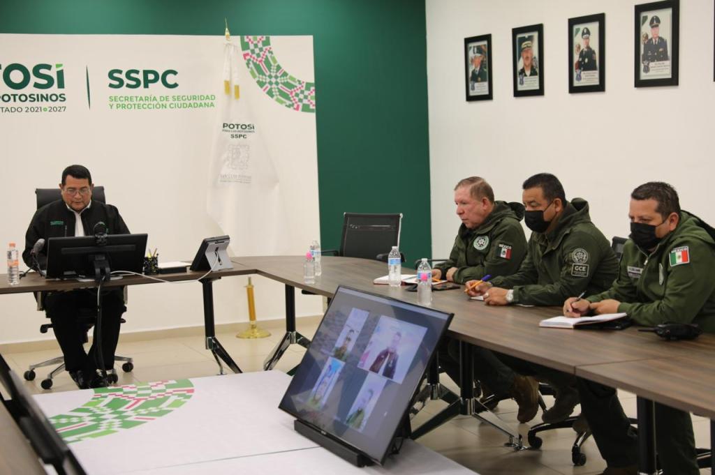 Al dirigir una reunión de trabajo semipresencial con los nuevos mandos de la Guardia Civil Estatal (GCE) en las cuatro regiones de San Luis Potosí, el titular de la Secretaría de Seguridad Estatal, General Guzmar Ángel González Castillo los exhortó a continuar y redoblar la mística de servicio, resultados en el compromiso de proteger a todas y todos los potosinos, y no claudicar en la baja de índices delictivos en cada uno de los municipios.